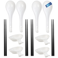 𝐃𝐞𝐫 𝐑𝐚𝐦𝐞𝐧 𝐒𝐞𝐭 𝐛𝐞𝐬𝐭𝐞𝐡𝐭 𝐚𝐮𝐬: 4 x Asiatische Suppenlöffel aus Porzellan, 4 x Paar Essstäbchen aus Bambus und 4 Dipschlen aus Porzellan mit Essstäbchenbank und Löffelablage