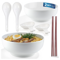 Bild in der Galerie öffnen: URBAN LIFESTYLE Ramen Schüssel Dinner Set Ø 20,5cm 8 Stück aus Porzellan mit Löffel und Essstäbchen (warm weiß)